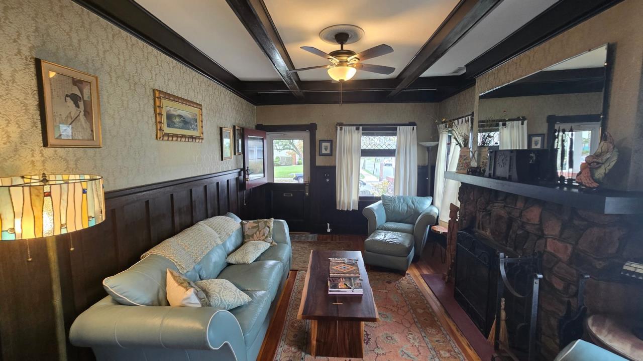 • Craftsman Bungalow with Gorgeous Hardwood Floors, Fieldstone Fireplace, Built-in Cabinets and Beamed Ceilings